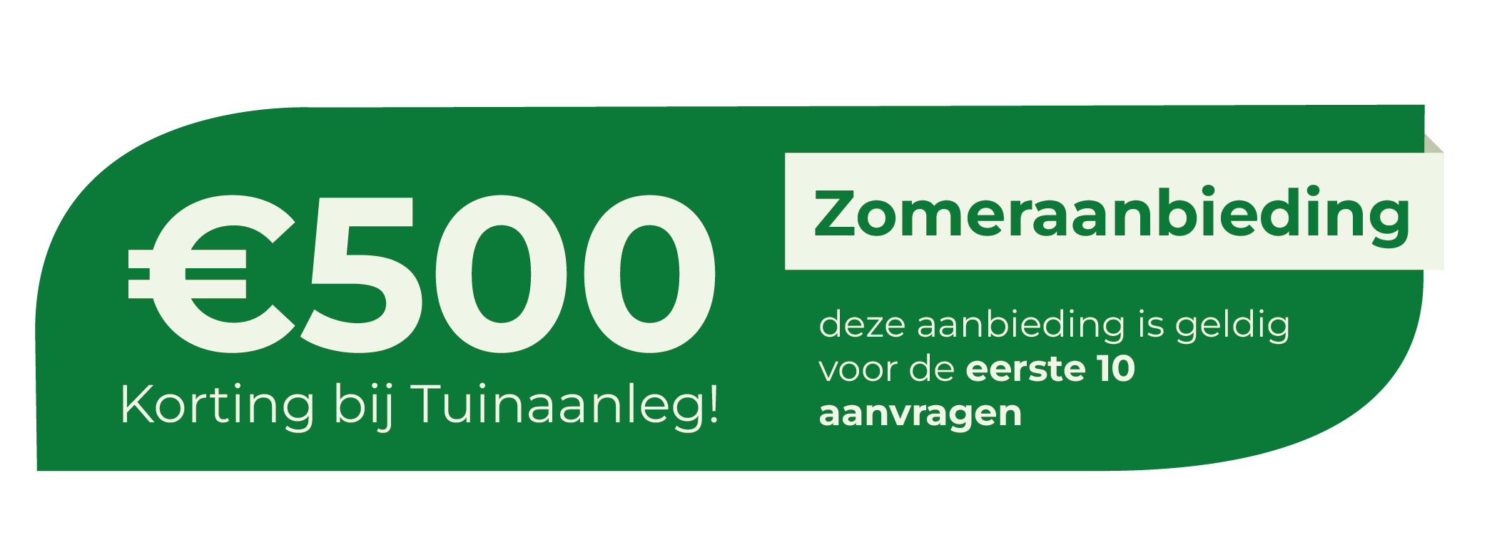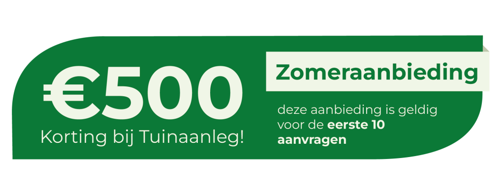 Boek uw tuinaanleg en ontvang € 500 korting op het eindbedrag.